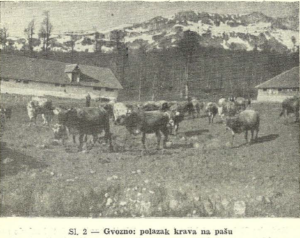 Prva organizovana stočarska proizvodnja na ovom području vezuju za kraj 19. vijeka i otvaranje zemaljskih stočarskih stanica od strane austrougarske vlasti, u Gacku, Livnu i Butmiru. Prema izvještaju iz 1947. godine, imovina Zemaljske stočarske stanice na Gvoznu kod Kalinovika sastojala se iz zemljišta u površini od 216,24 ha, od čega je bilo 26,76 ha oranica, 123,69 ha livada i 65,79 ha krša.U nastojanju da se za Stanicu obezbjede dovoljne površine, Ministarstvo za poljoprivrede BiH je putem eksproprijacije, arondacije i konfiskacije obavilo njeno proširenje. U 1954. godini površine su iznosile oko 950 ha, od čega oranica – vještačkih livada oko 150 ha. S obzirom da je u toku drugog svjetskog rata tadašnja stanica pretprjela značajne štete, bilo je potrebno obnavljanje ovog dobra. Obnavljanje stočnog fonda izvršeno je 1953. godine, kada su iz Austrije nabavljene 32 visokosteone junice i jedan bik sivotirolske pasmine. Iz Zapadne Njemačke nabavljeno je 10 ovaca i 6 ovnova virtemberške pasmine, sa FOPD „Slatina“ je preuzeto 100 virtemberških ovaca. Na domaćem tržištu nabavljeno je 250 ovaca sjeničkog tipa. U jesen 1954. godine iz Zemuna u Srbiji nabavljene su 4 nazimice i 6 nazimadi engleske bijele svinje za priplod.