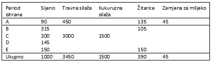 Tabela 1. Predviđeni plan prehrane na zimu rođenih teladi (januar) do završne mase